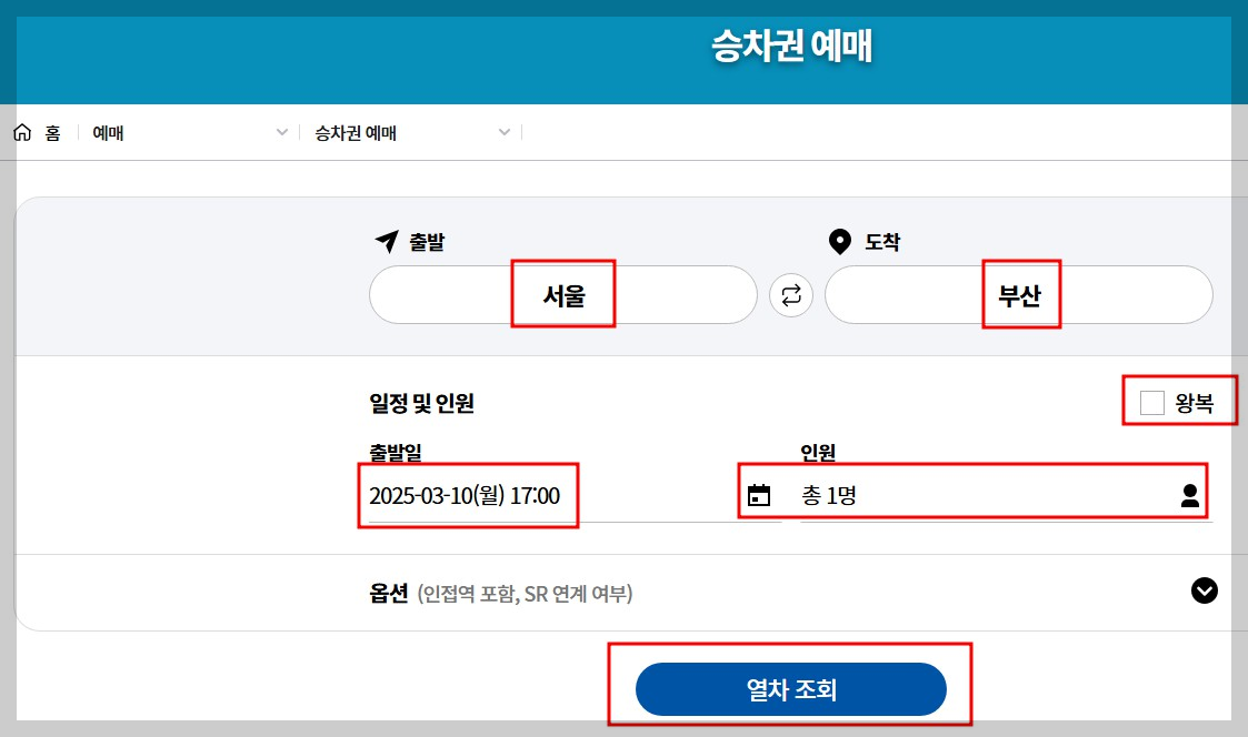 - 출발역·도착역 및 날짜 입력